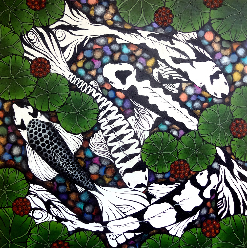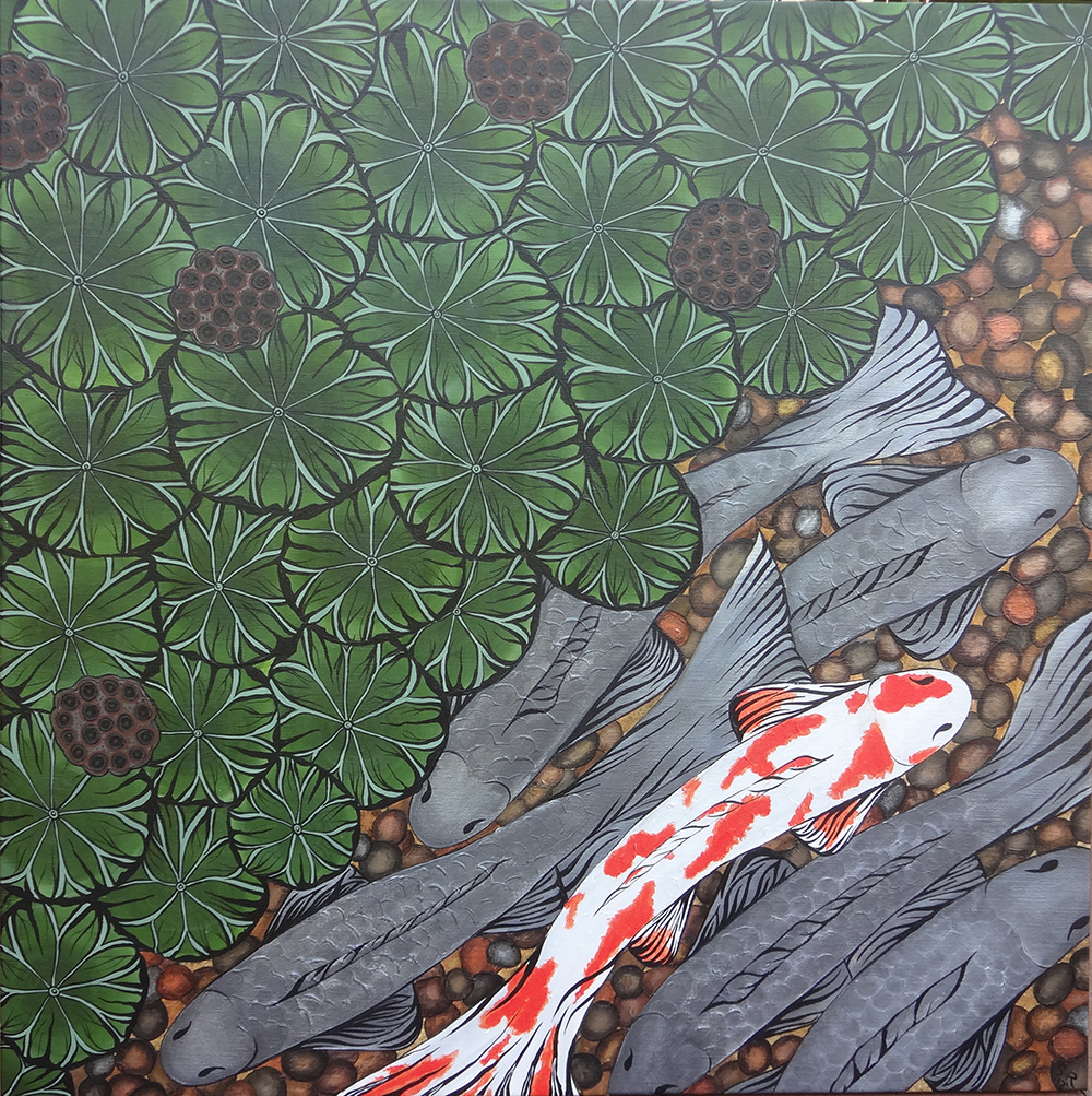 acrylic and various textual mediums on linen 40" x 40" (sold)
